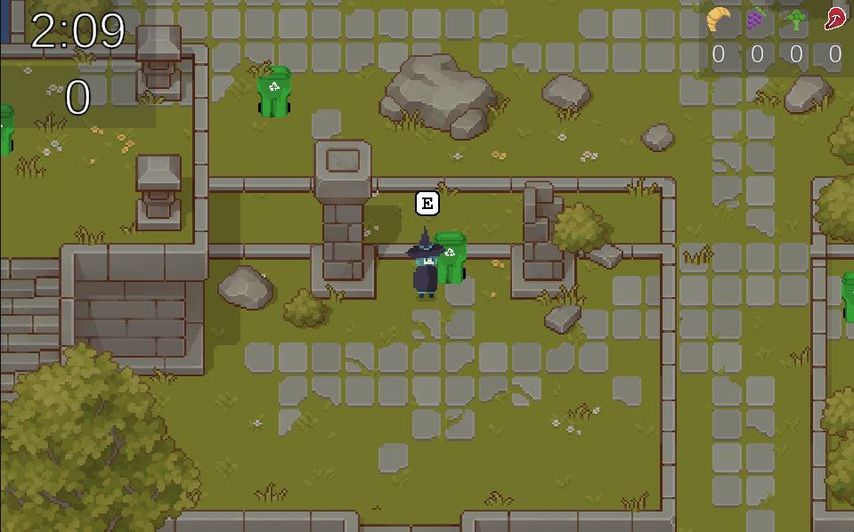 - Interagir / ouvrir une poubelle : E